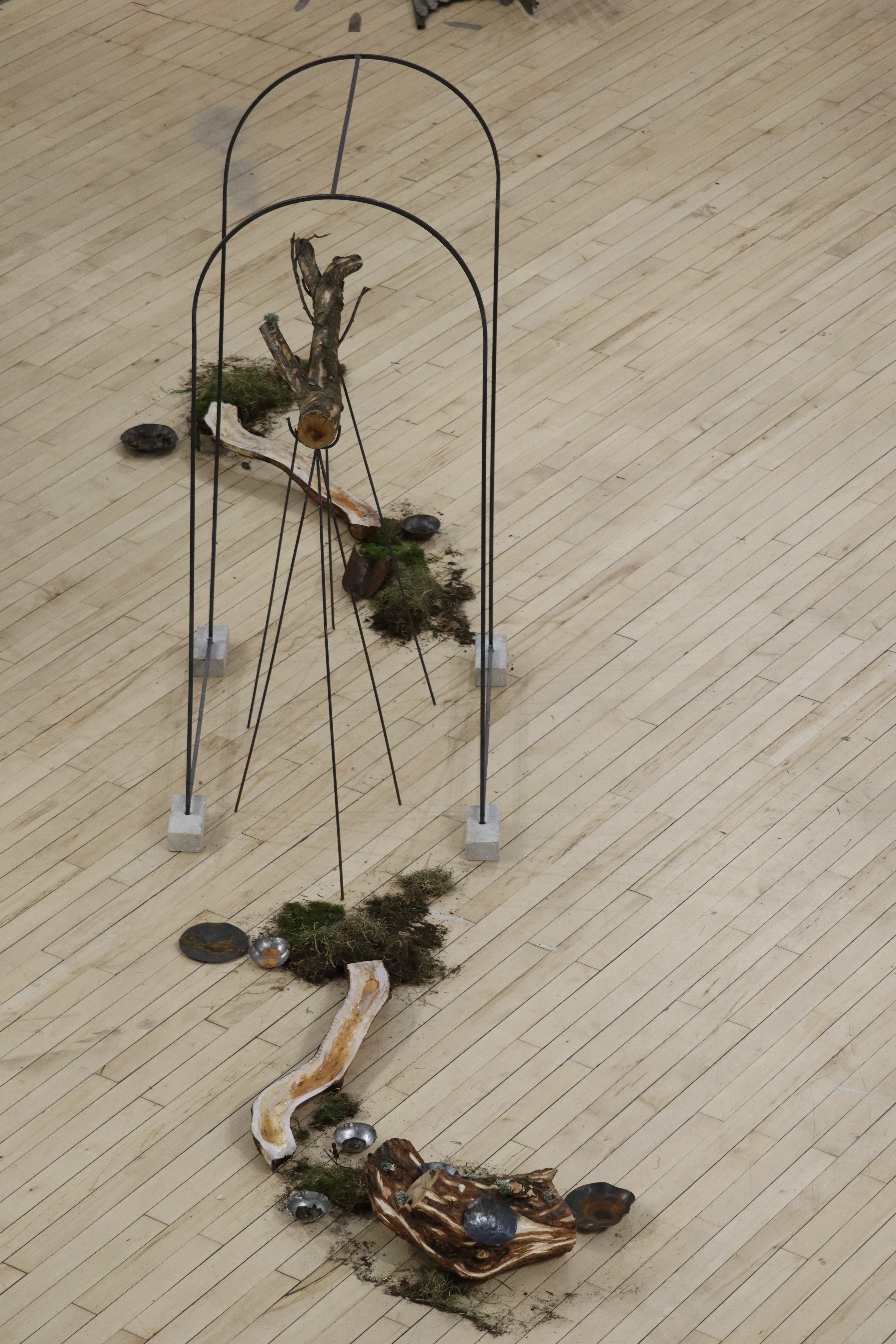 Carved pine, locally collected moss, soil samples and lichen.